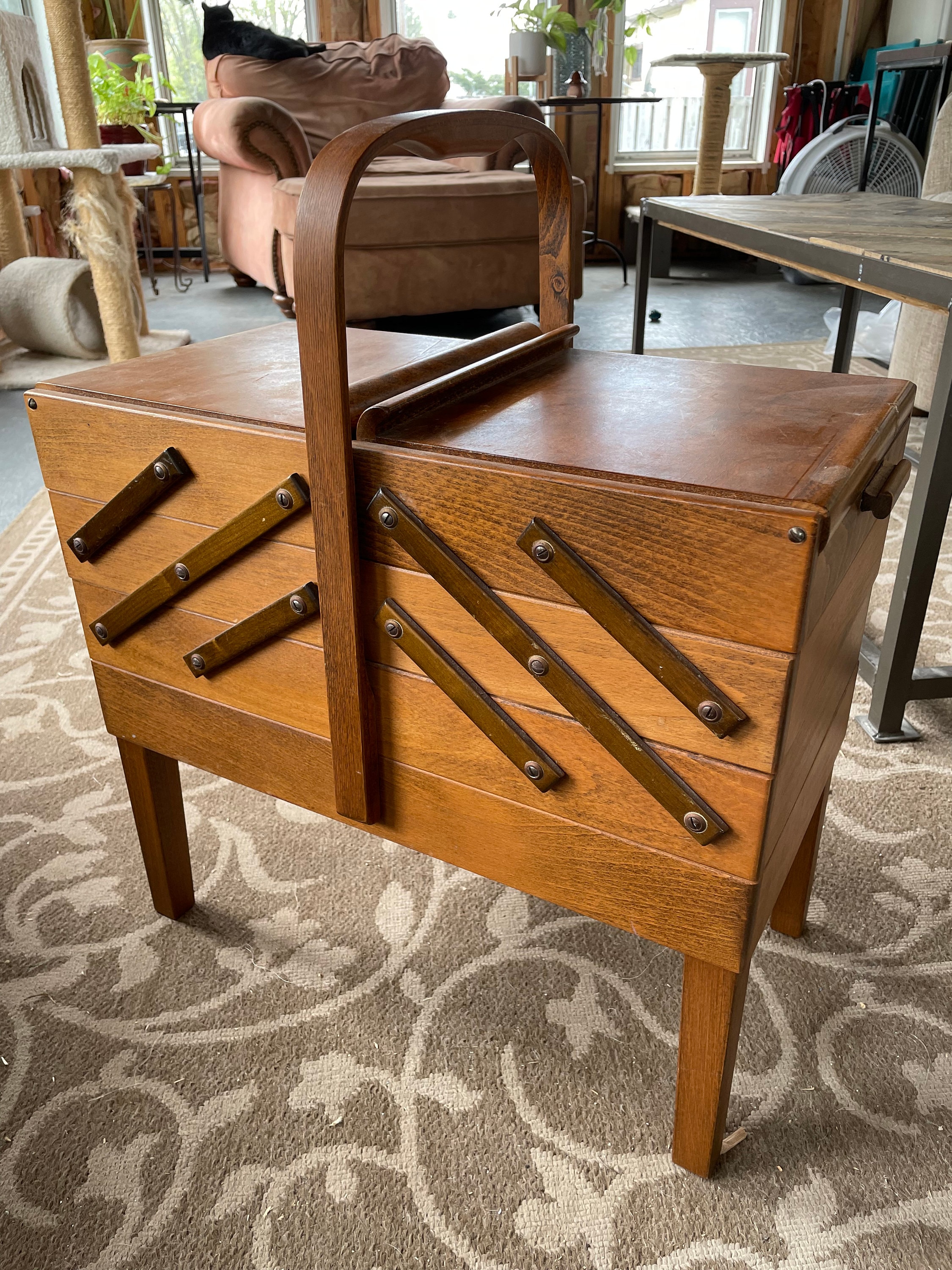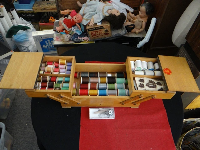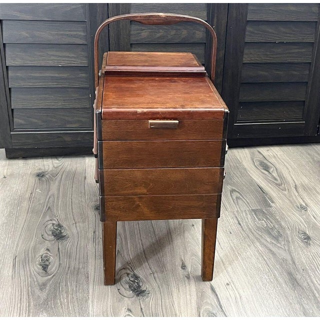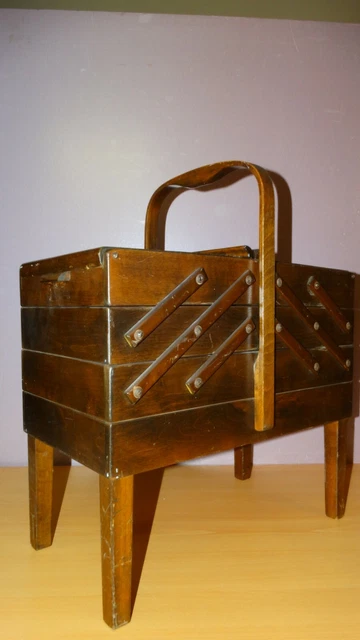 Vintage A S Strommen Bruk Hamar Accordian Style Sewing Box On Legs 344123972